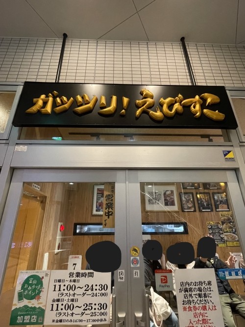 富山駅から歩いて5分圏内にある店舗で、22時ごろに行きましたが、まさかの大行列!