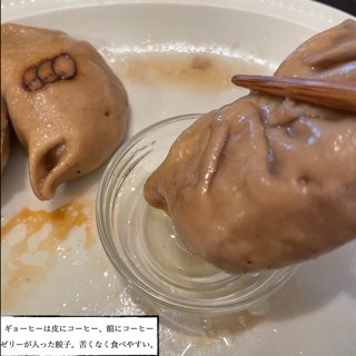 これは餃子の皮にコーヒー豆が練りこまれているそうで、このような色合いになっているそうです。
