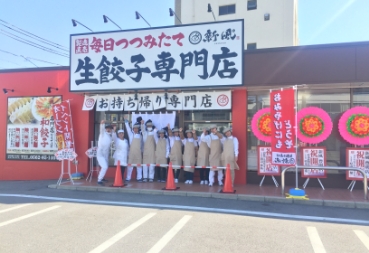 全国から注目され、週末には1日1万個売れる当社直営の餃子テイクアウト専門店「新風°」の餃子を業務用に販売。多くのファンに愛される餃子のクオリティーを、そのまま全国のお店にご納品しています。