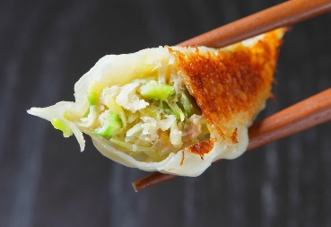 プロの為の業務用餃子皮のみを100種類製造してるメーカーとして、長年蓄積してきた餃子皮に関するノウハウを冷凍餃子に惜しみなく注入し、「本当に皮が美味い冷凍餃子」をご提供しています。また、餃子餡においては味付けだけでなく食感にもこだわり、肉のミンチの大きさや野菜のカットの仕方を工夫。