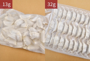 餃子の大きさから形状まで様々な冷凍餃子を提供しています。大きさは13gから32gまで形状は焼き方に合わせて3種類ございます。