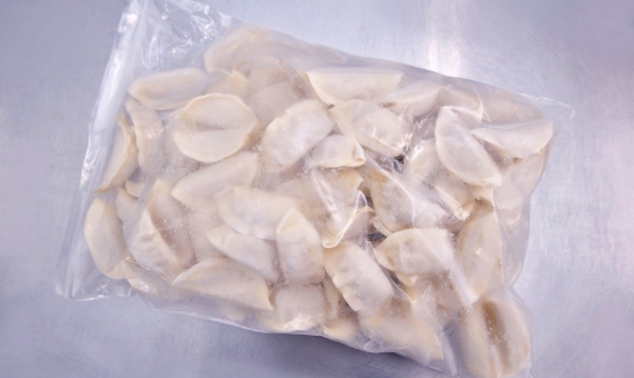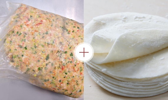 餃子皮と餡をご納品。お客様側で場合により餃子包餡機を購入し、餃子内製化をスタートしていただきます。