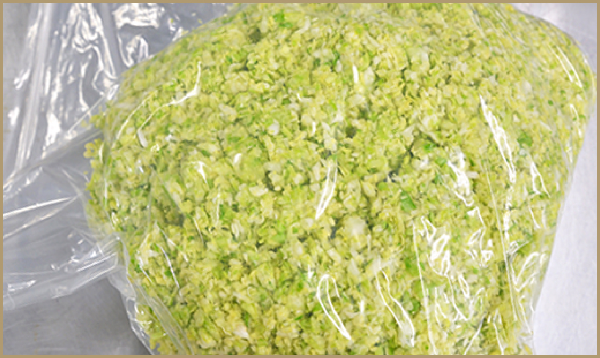 みじん切りなら機械で対応できても、水分を絞るのは手間がかかって大変です。しかし、しっかり脱水しないと餃子の餡に使えるキャベツにはなりません。伸和食品では、カットだけでなく、脱水まで施したキャベツも取り扱っています。